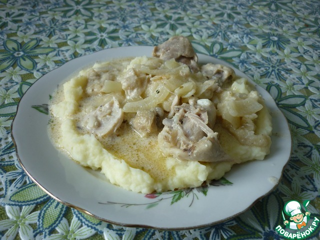 Недавно по телевизору в одной кулинарной передаче открыла для себя этот чудесный рецепт… Чем он меня покорил? Во-первых, очень любят в моей семье сметанный соус и курицу. Во-вторых, блюдо готовится в одной посуде – большой сковороде (для меня это – уже огромный плюс), без каких-либо предварительных подготовок. В-третьих, кушать можно с любым гарниром или даже без него… Готовила «Гедлибже» девушка, родом из Кабардино-Балкарии. Это один из множества способов приготовления этого национального блюда.
