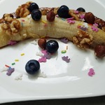 Приготовлено в аэрогриле. Банан получается мягким, печеным, если время запекания уменьшить, то банан останется почти свежим.