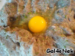 В котлетный фарш cо специями, луком, чесноком, добавляем яйцо. -