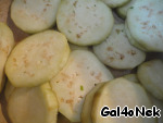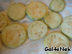 Баклажан чистим, режем колечками примерно 3-4 мм толщиной, подсаливаем.