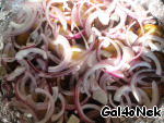 Сверху выкладываем маринованый лук. Лучик утреннего солнечного света так живописно его подсветил :)
