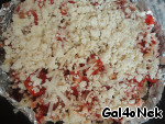 Присыпаем половиной потертой на крупной терке моцареллы и половиной раскрошенной руками брынзы.