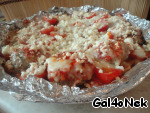 В общем, готовила одно блюдо, а в процессе подключила фантазию и получилось блюдо совсем другое. Очень хотелось назвать это "Овощной пиццой", т. к. в нем есть практически все признаки пиццы, только без теста. Но решила, что знатоки классической пиццы "закидают тапками". Поэтому и придумала такое название.