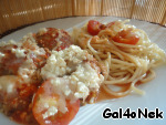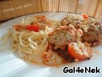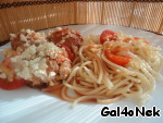 Спагетти я полила соусом, который образовался вместе с запеченными тефтелями.