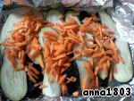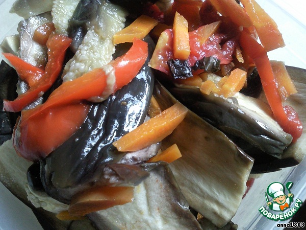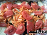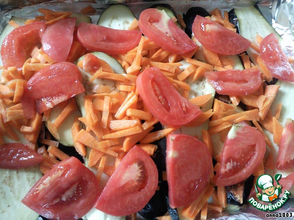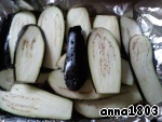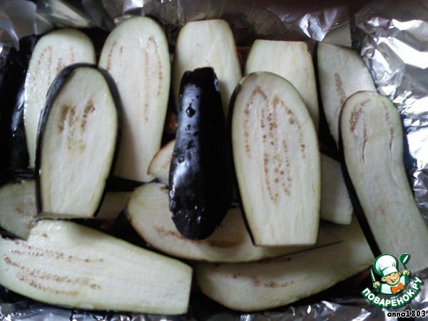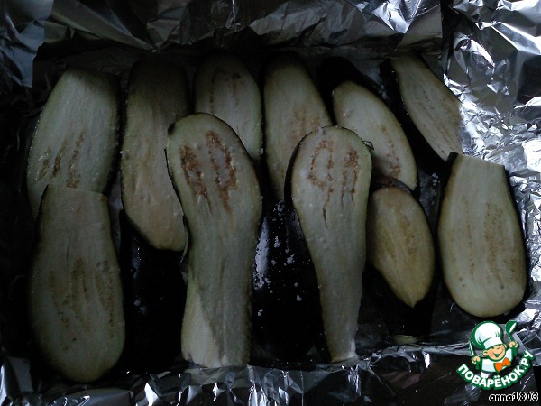 5. Выкладываем слой баклажановых пластиночек. Половина от всего количества.