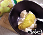 Для заправки смешать майонез, горчицу и лимонный сок, соль, перец по вкусу