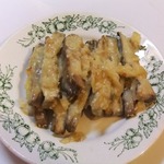 Соломку из баклажанчиков замариновать в специях, соли (по желанию добавьте выжатый через пресс чеснок) -