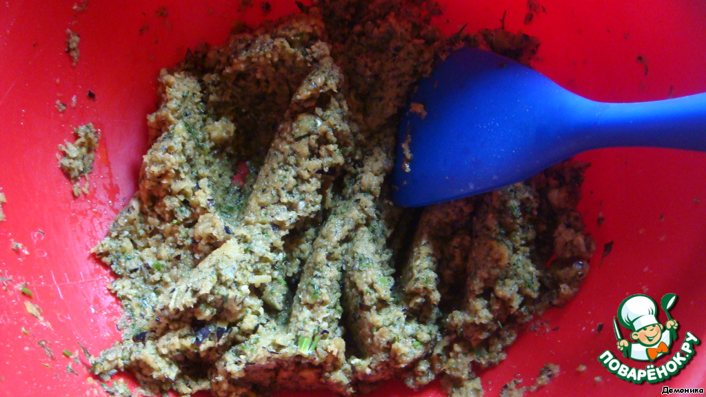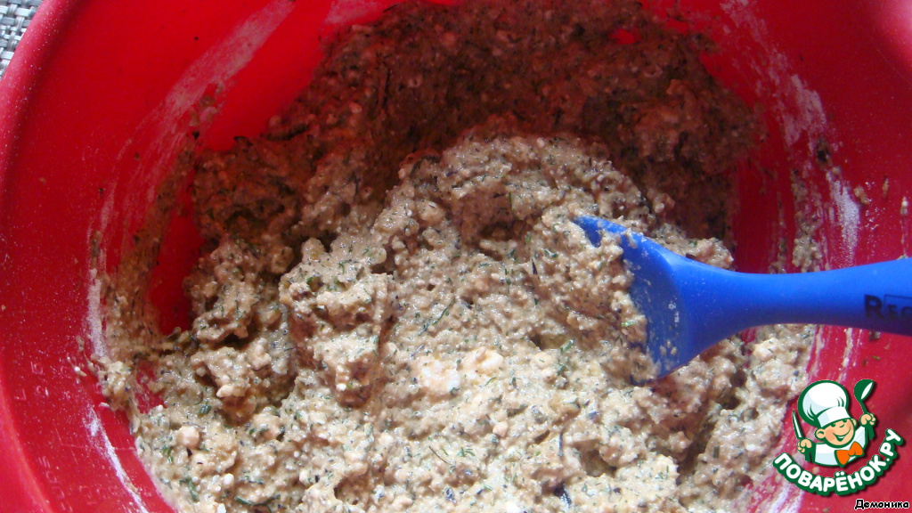 ... и муку. Должна получиться смесь, по консистенции напоминающая тесто для оладьев.