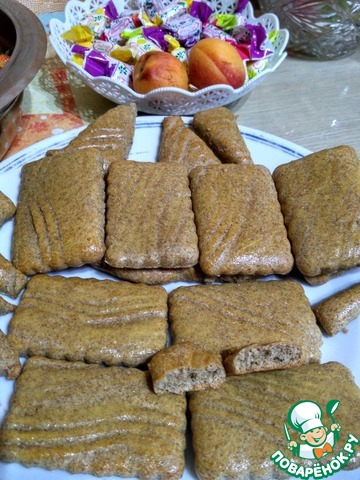 На 2 стакана ржаной муки мелкого помола -3 ст. ложки сахара, 2 яйца, 2 ст. ложки сметаны, 1/2 чайной ложки питьевой соды.