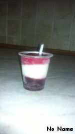 Для фиолетового слоя смешать в блендере чернику, черничный йогурт и 1/4 стакана воды. Заполняем этой массой пластиковые стаканчики емкостью 50г на 1/3.Ставим в морозилку.