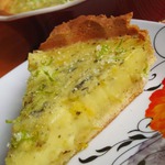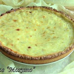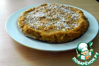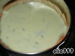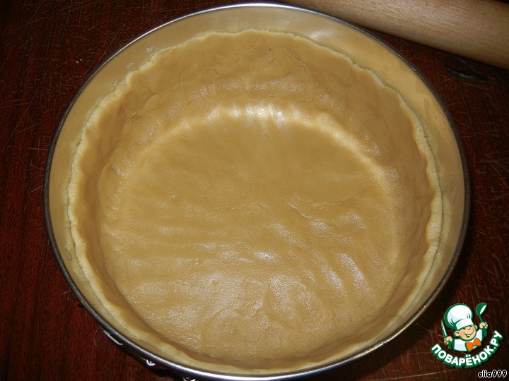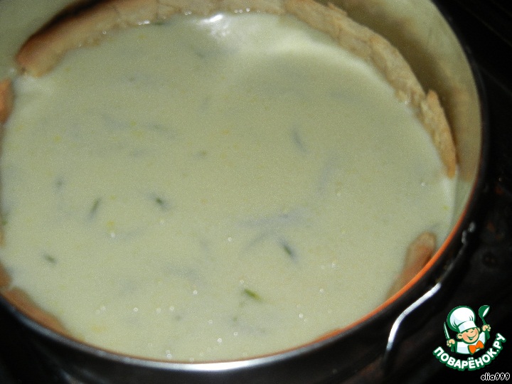 Вот и время пробежало. Наше тесто охладилось,дастаем его и вилочкой аккуратненько накалываем. Отправляем в хорошо разогретую духовку до 200 градусов на 12 минут вместе с шариками для выпечки (у меня их нету, я использовала горох), а затем еще 10 минут,но уже без груза. Далее не доставая основу из духовки,вылеваем на нее нашу начинку и выпекаем 25-30 минут уменьшив при этом температуру до 160 градусов.