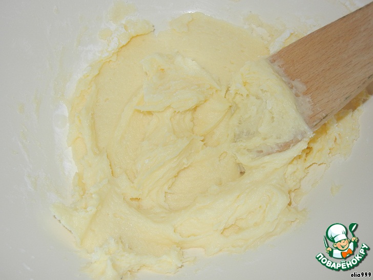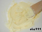 Размягченное сливочное масло смешиваем с сахарной пудрой в кремообразную массу. -