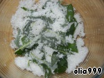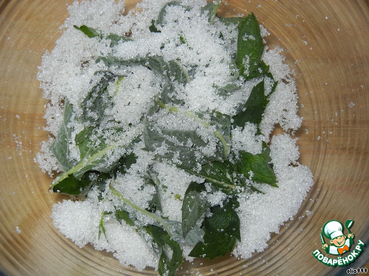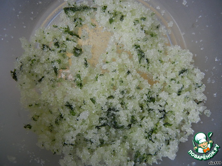 По рецепту-мяту я измельчила (хотелось ее в начинку),залила кипятком (1 стол.л.),