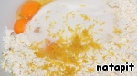 Творог пробить в блендере (протереть через сито), взбить с сахаром, цедрой, желтками и яйцами. Молоко смешать с сливками, развести с пудингом влить в творожную массу. Масса становится жидковатой. Взбить миксером.