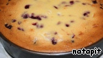 Творожную массу вылить на тесто, разместить сверху вишню и легонько вдавить её в массу.