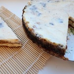 Разъёмную форму ( у меня диаметром 23 см.) застелить кулинарной бумагой, выложить, чередуя слоями, мучную крошку, творожную смесь...