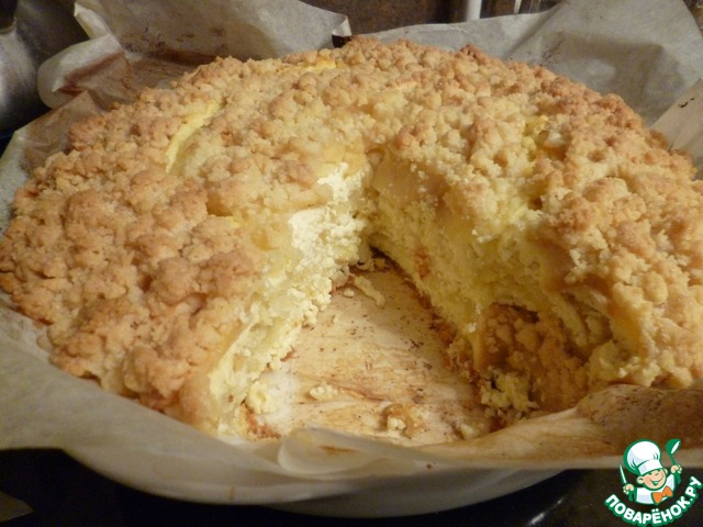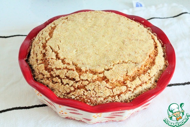 Сверху должна быть мучная крошка. Ставим в духовку, разогретую до 180 градусов, на 1 час.