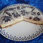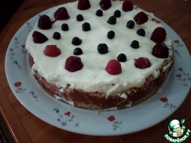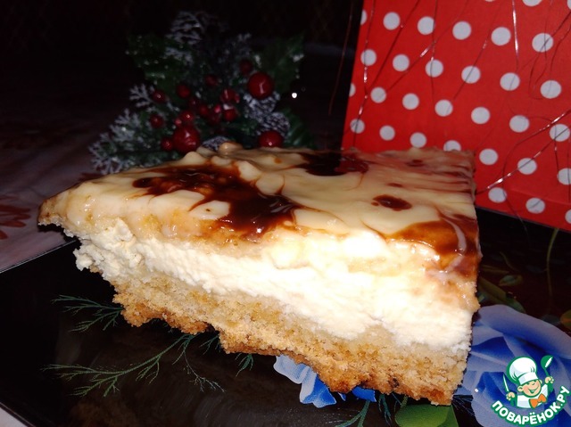 [+3]Рисунок на заливке выполнен кофейной сгущёнкой, а ягодки - смородина.