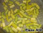 Спаржевую фасоль вымыть, обсушить, нарезать кусочками 1,5-2 см,