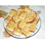 Рецепт теста из Инета,данный рецепт меня заинтересовал своей необычностью,при его замешивании не надо касаться его руками,что именно это дает я догадываюсь.Правило есть правило,его надо соблюдать.Сначала мне показалось,что это будет трудно,но на самом деле всё очень легко и просто,я перемешивала все продукты своей лопаточкой.К тому же количество продуктов подобрано с большой точностью.С моей мукой,которую я применяю корректировать тесто не пришлось.Но если вдруг вам покажется ,что консистенция теста не правильная подправите его добавлением ещё одного куриного яйца, если оно густое.А если тесто получилось жидковатым,то добавьте дополнительно муки. За рецепт теста(слоёное дрожжевое) АВТОРУ большое спасибо,это просто ценная находка!