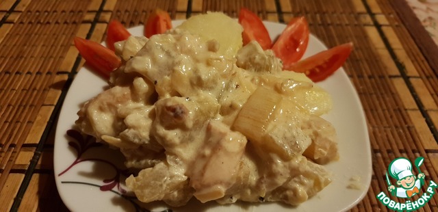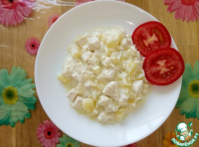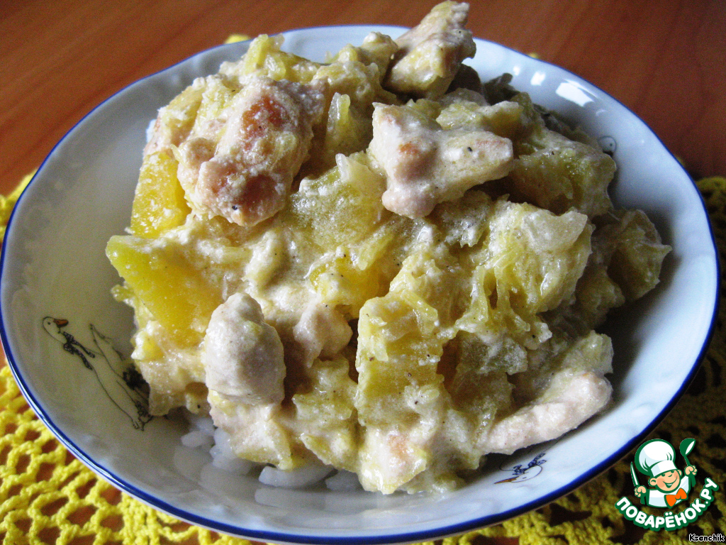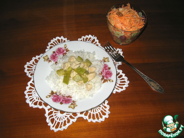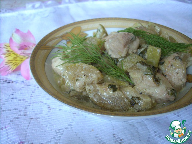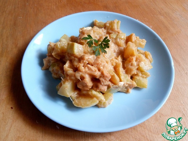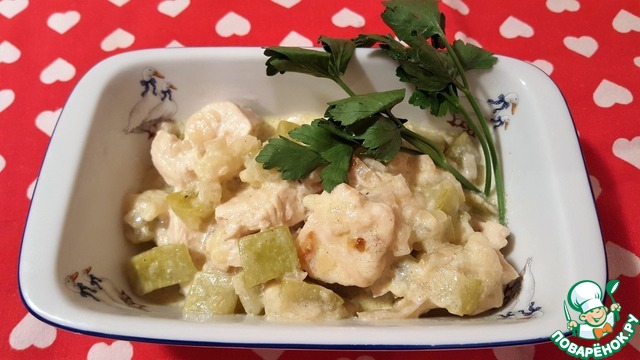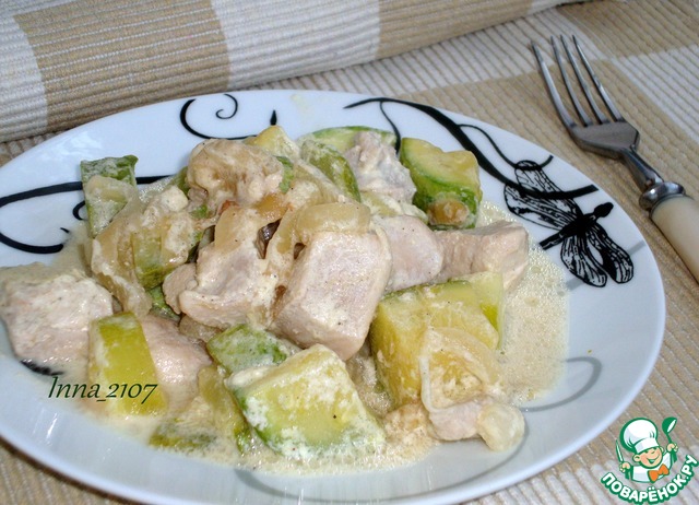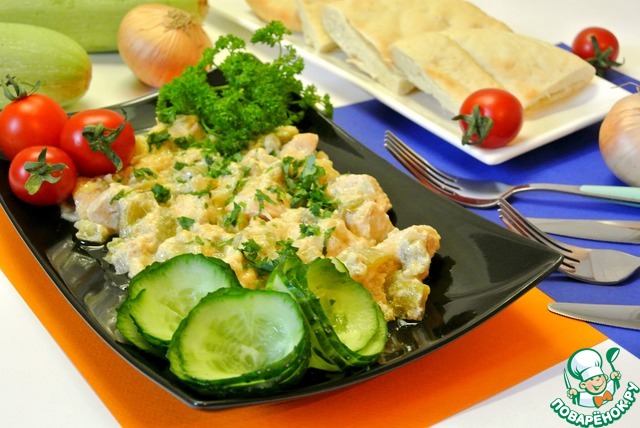 Рецепт «Кабачки с курицей в нежнейшем соусе»: