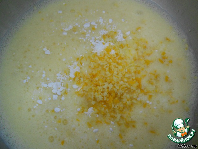 Добавить измельченную свежую цедру лимона и продолжать взбивать в густую массу.