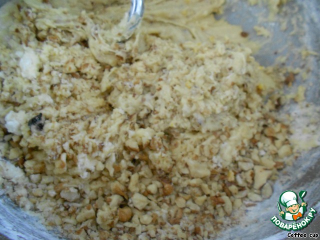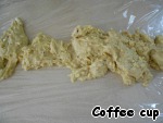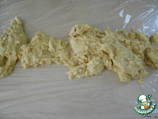 Выложить тесто (густое) на пленку, смазанную маслом.