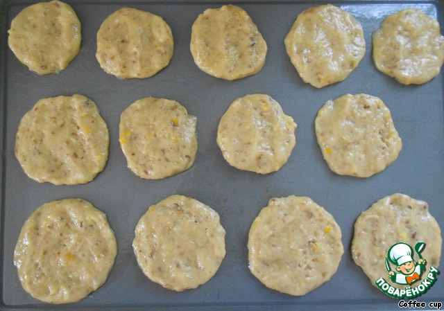 На смазанный маслом противень выложить тесто в виде печенек. Масляными руками скатать небольшие шарики из теста и получить печеньки.