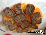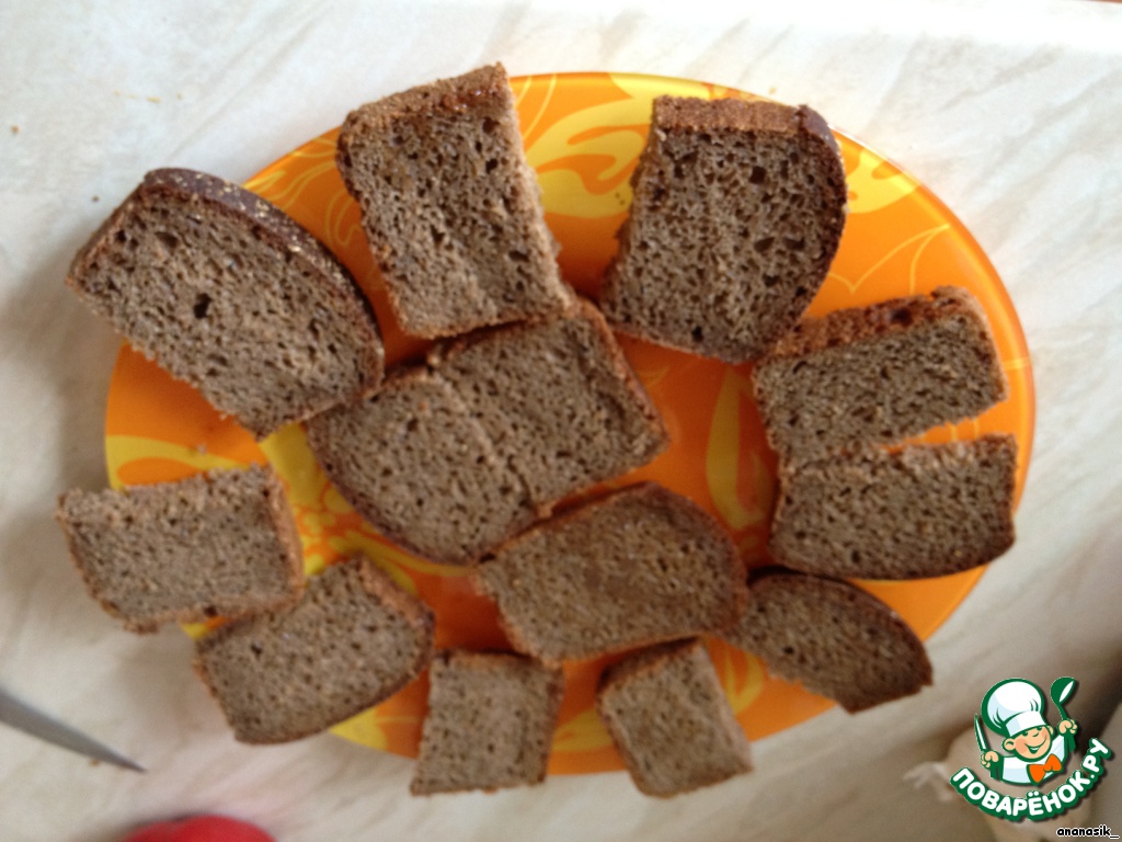Пока жарятся баклажаны, нарезаем хлеб. Можно использовать не только бородинский, но и любой другой.