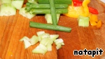 Перец очистить от семян, приблизительно 1/4 часть от общего количества нарезать маленькими кубиками и отложить в сторону, остальной поместить в блендер.