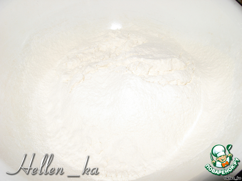 Просеим муку с 1 ч.л. соды (без горки).