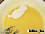 Теперь добавим сахар, ванильный сахар и щепотку соли - взобъем. -