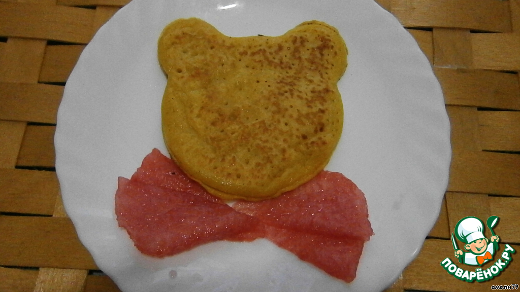 Оладушки в виде головы мишки желтого цвета на пиве.