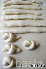 Из каждого куска теста скатать жгут,один конец которого будет чуть толще другого.