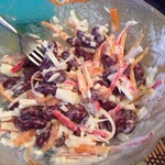 Морковку отварить до состояния «аль денто», как пасту. Полностью остудить. Вообще, я хочу дать совет молодым, начинающим хозяйкам - никогда не смешивайте в салатах теплые продукты с холодными - салат очень быстро прокиснет. Все должно быть одной температуры, желательно, охлажденной, меньше, чем комнатная.