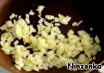 На нагретую сковороду наливаем оливковое масло и слегка обжариваем в нем лук.
