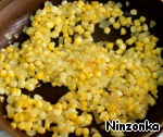 Теперь готовим начинку. Лук и петрушку мелко нарезаем, бекон режем на маленькие куски, с кукурузы срезаем зерна.
