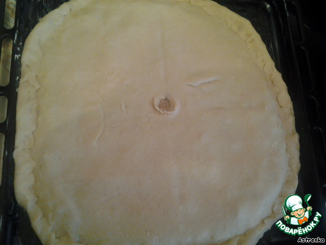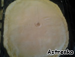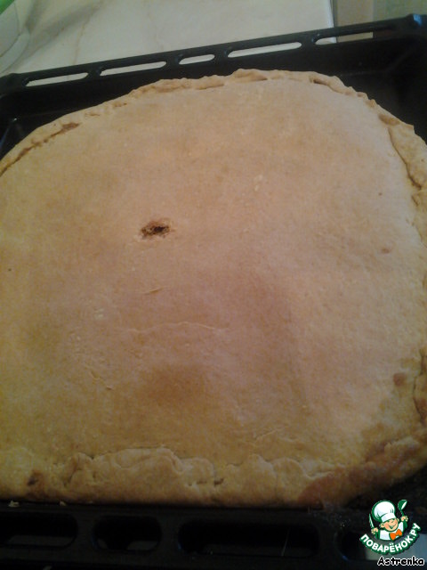 БОльшую часть раскатываем толщиной где-то 1 см и выкладываем в форму, как правило сковороду (я брала всех ингредиентов в 2 раза больше и готовила на противне).