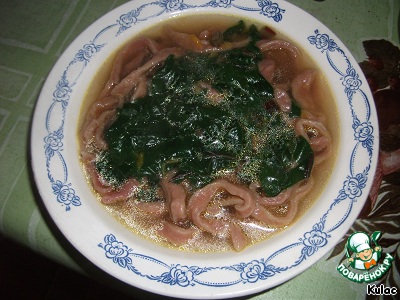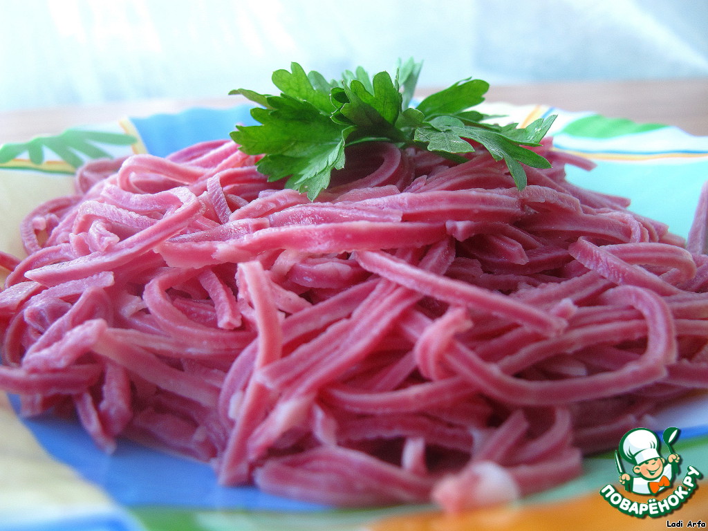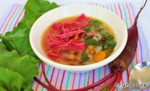Рецепт «Суп с домашней пастой на свекольном соке»: