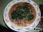 В тарелку кладу пасту и заливаю супом с ботвой. Приятного аппетита!