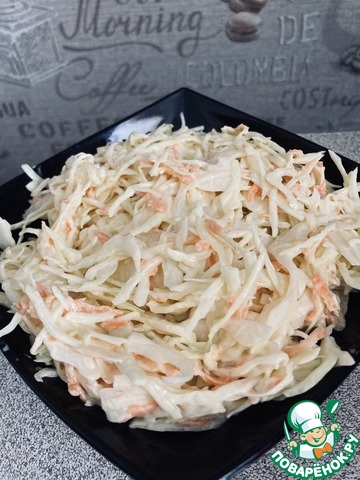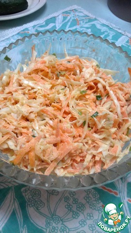 Салат "Cole slaw". С удивлением не обнаружила на сайте оригинального рецепта этого салата, да и в интернете не сразу нашла, не помню уже на каком сайте мне повезло. )) Готовила несколько вариантов, прежде, чем добилась желаемого вкуса. Помните в американских ресторанчиках подают чуть сладенький салат из моркови и капусты, как гарнир? Так вот, этот салатик один в один как ресторанный вариант! Так им "заболела", что готовлю на ужин по 2 раза в неделю.
