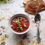 Девочки, не кидайтесь в меня тапками, прошу вас. Конечно, на сайте есть рецепты гаспачо. Их 2 или 3 (Андалузское гаспачо не в счет, все таки оно другое). Я внимательно изучила все. Некоторые - без пошаговых фото. Все они похожи, но чем-то и различаются. У каждой хозяйки свой нюанс. Есть такие нюансы и в моем рецепте. Я думала больше недели, размещать или нет, а потом решилась. И главной причиной тут послужило то, что, во-первых, я уже разместила 2 рецепта других гаспачо... А, во-вторых, я должна была завершить свой "светофор" из гаспачо. Ведь, если уже есть желтый цвет ("Золотой" гаспачо), есть зеленый цвет ("Изумрудны й" гаспачо), то как же без красного?!!! Вот так и появился Красный цвет - "Рубиновый" гаспачо, так я его сама назвала, но, вообще-то, это просто классический томатный гаспачо...