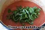 Добавить нарезанный полосками базилик и масло. Охладить.