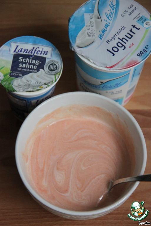 Добавить сливки и йогурт. Взбить до однородности.