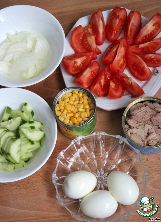 - Кукуруза (консервированная, маленькая баночка) — 1 бан.