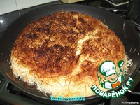 Вот здесь самое интересное: горячую сковородку смазать сливочным маслом как на блины, выложить половину теста и дать несколько минут прожариться