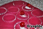 Приготовим тесто, как здесь https://www.povarenok.ru/recipes/show/66653; у меня осталось тесто от пасты, оно лежало ночь в холодильнике в пленке, цвет стал немного темнее и ярче. Раскатала и вырезала маленькие кружочки формочкой для печенья. Посыпать в каждый кружок сахар и положить одну вишенку.