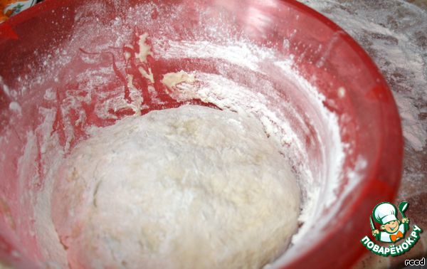 Добавить муку, замесить не крутое тесто, положить его в миску, накрыть полотенцем и оставить, чтобы подходило.