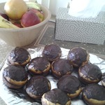 Готовые кексы полить растопленным шоколадом, можно украсить стружкой. Если в доме не оказалось шоколадки, можно полить глазурью - 2 ст. л. какао, 3 ст. л. сахара, 1-2 ст. л. молока или воды и ложку сливочного масла подогреть на маленьком огне до растворения сахара, постоянно помешивая.