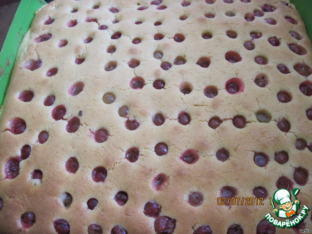 Рецепт «Творожно-бисквитный пирог с крыжовником»:
